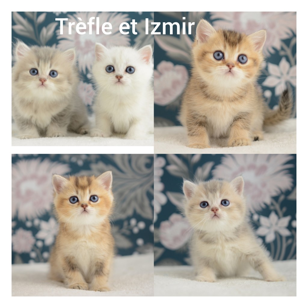 Trèfle a eu 5 chatons avec Izmir, et ils ont eu une jolie palette de couleurs : du black et blue golden, et du silver shaded.
